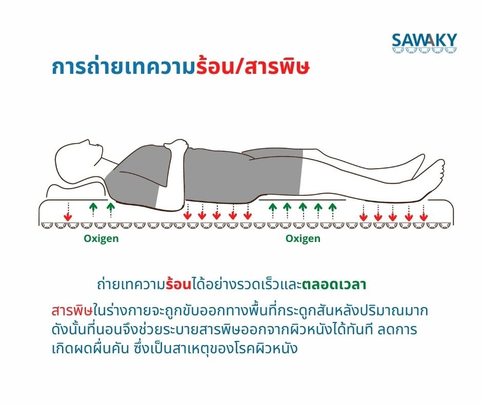 ร่างกายจะระบายความร้อนและสารพิษ(Toxic)ออกสู่ผิวหนังตลอดเวลาไม่ว่าร่างการจะอยู่ในท่า นั่ง นอน ยืน เดิน และท่านั่งและท่านอนจะได้รับผลกระทบต่อสุขภาพมาก ทั้งคนปกติและผู้ป่วย โดยเฉพาะผู้ป่วยติดเตียงจะส่งผลกระทบอย่างมากคือเสี่ยงต่อการเกิดแผลกดทับ